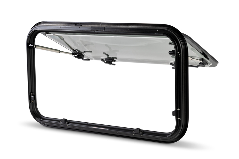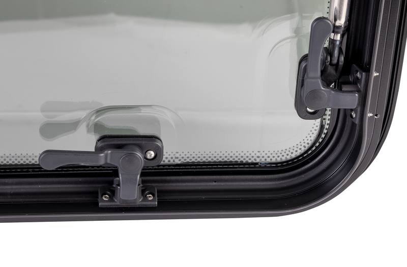 Die Neuheit im Fahrzeug-Fenster Segment! Das Fenster RW Fusion vereint eine Echtglasscheibe auf der Außenseite mit einer Acrylglas-Innenscheibe. ACRYLGLAS, SICHERHEITS GLAS, DOPPELT VERGLAST, LICHTDURCHLÄSSIGKEIT: 30%, SCHEIBE NACH INNEN GEWÖLBT, UV BESTÄNDIG, MIT LÜFTUNGSPOSITION, STAHL-AUSSTELLER (STUFENLOS), MATERIAL RAHMEN: ALU, FÜR WANDSTÄRKEN VON 30-40 MM, INKL. MONTAGERAHMEN, ECKRADIUS FENSTERRAHMEN: 75 mm, ECE R43